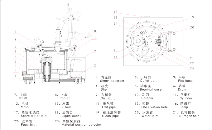 1)Fully sealed structure,interior cavity protected from overload nitrogen,explosion proof. 2)Fast-opening big lid structure,available electric slope dish distributor evenly distribution,greatly impair vibration caused by unevenly feeding. 3)Internal online washing system,meet the requirement of high grade cleanliness.