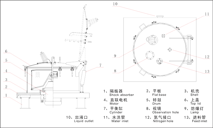 1)Flat plate is made of Q235A carbon steel coated by stainless steel. 2)Drum base is made of cast iron coated stainless steel,other parts of drum is fully stainless steel. 3)Bearing pedestal is made of cast iron coated stainless steel. 4)Shell,top lid and belongings are made of stainless steel. 5)Direct-connected motor parts contact material are coated stainless steel. 6)Balance cylinder is made of stainless steel. |